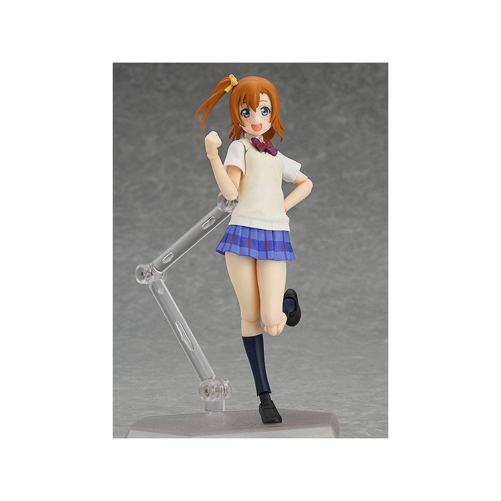 From the anime series 'LoveLive!' comes a figma of the ÃŽ¼'s leader - Honoka Kosaka!Using the smooth yet posable joints of figma, you can act out a variety of different scenes. Three expressions are included: A cheerful smile, a shocked expression as well as a content expression!Optional parts include her school bag, a microphone and her favorite food - bread! Two glow sticks of her image color are also included.The figure stands approx. 13 cm tall and comes with base and figma stand.