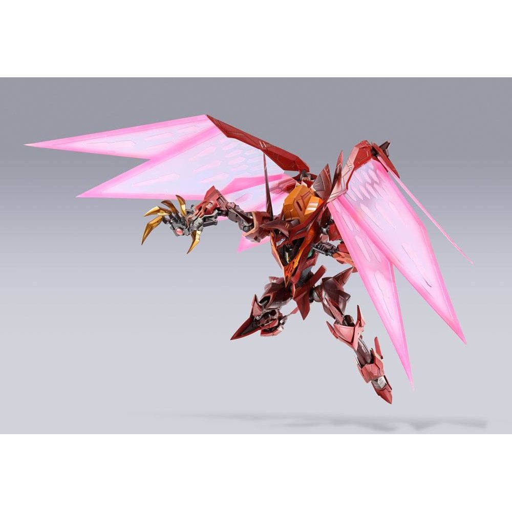 The second release in the METAL BUILD DRAGON SCALE series is the first-ever 1/30 scale figure of the Guren Type-08 Elements "Seiten" from "Code Geass: Lelouch of the Rebellion R2!" The hyper-articulated outer shell allows for posability like never before, and the sculpting captures the image of the Frame as seen in the original design art. The energy wings span 750mm when fully deployed, and the use of diecast parts, chrome plating, and translucent parts accentuates the sense of quality and realism all the more.Set Contents:Main Body, Three pairs of optional hands, Energy wings open (L/R), Energy wings closed (L/R), Sword, Wires for claw weapon (L/R), Right arm wide range option part, Right arm wire parts, Stand connector, Stand set