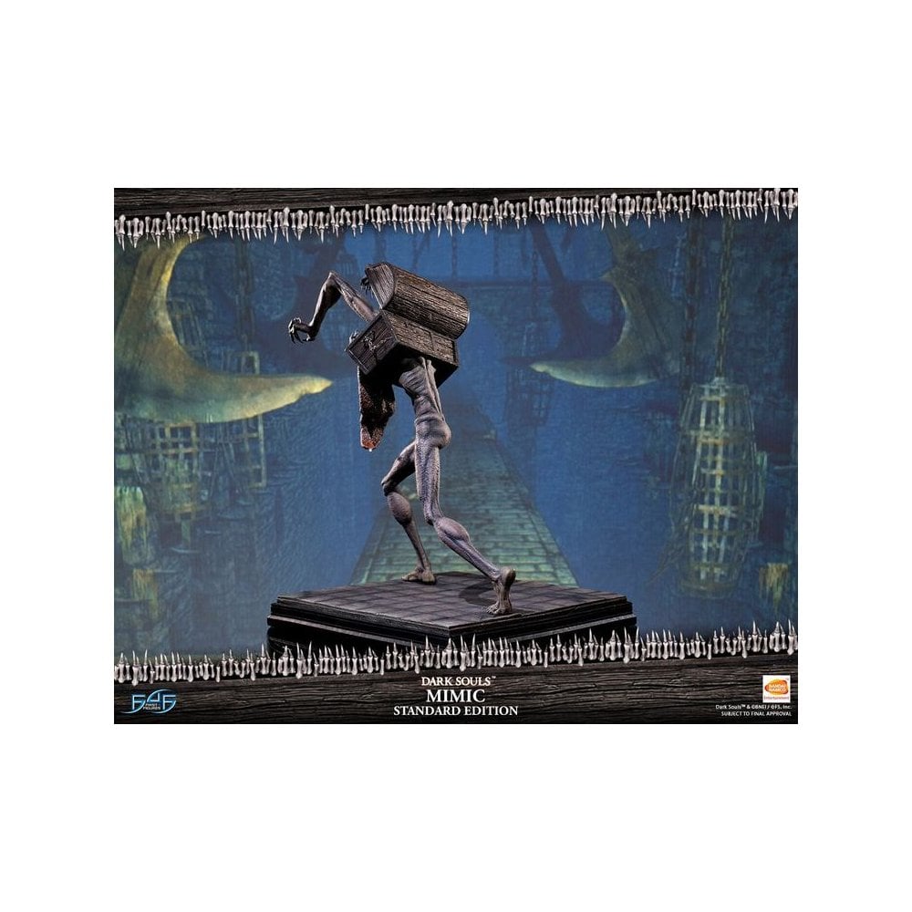 First 4 Figures is proud to present the highly anticipated Dark Souls - Mimic statue Sleeping in the corners of Lordran, the Land of Ancient Lords, are these seemingly harmless treasure chests awaiting discovery. Sooner or later, inexperienced and greedy travelers would befall the Mimic's clutches as they attempt to retrieve the treasures within. Mimics are unique monsters disguised as treasure chests. If players mistakenly open one of these, it will grab and sink its teeth into them with no remorse. If attacked, it will reveal its true and intimidating nature and shred the ill-fated apart. Rumor has it that the treasures they keep are belongings of their unfortunate victims of past. There are tells, however, to differentiate Mimics from normal treasure chests, but we'll leave that up to players to git gud and learn themselves. (HINT: Pay close attention to the chest's chain, and like any other living creature, what do they need to do to survive?) Product Size: 59 x 43 x