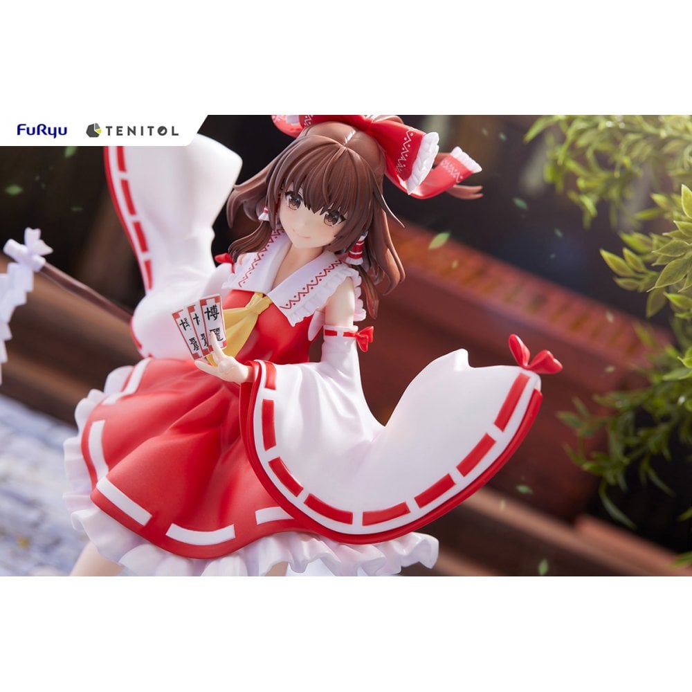 From FURYU's new affordable figure brand ""TENITOL"" comes a new figure of Reimu Hakurei from Touhou Project! Reimu Hakurei from Touhou Project is here! The cute Reimu Hakurei has been sculpted from a drawing by popular illustrator Nonoko. The figure comes with a special stand inspired by a corner of the Hakurei Shrine, making it easy to display while expressing the world of the figure.