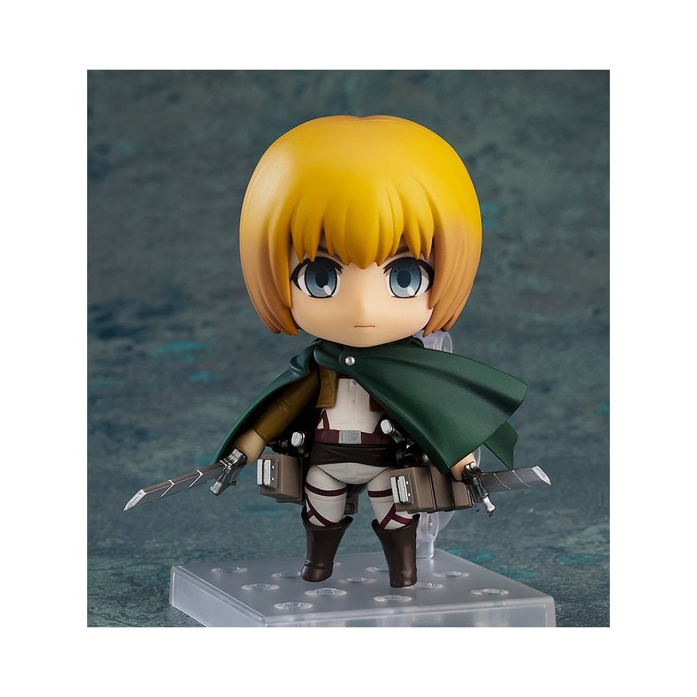 "Someone who can't sacrifice anything can never change anything."From "Attack on Titan" comes a Nendoroid of Armin Arlert in his Survey Corps uniform!Face plates:· Determined face· Shouting face· Blushing faceOptional parts:· Cloak· Dual blades· Vertical Maneuvering Equipment· Other optional parts for different poses.*This Nendoroid is an updated version of Nendoroid Armin Arlert featuring an updated outfit and optional parts.
