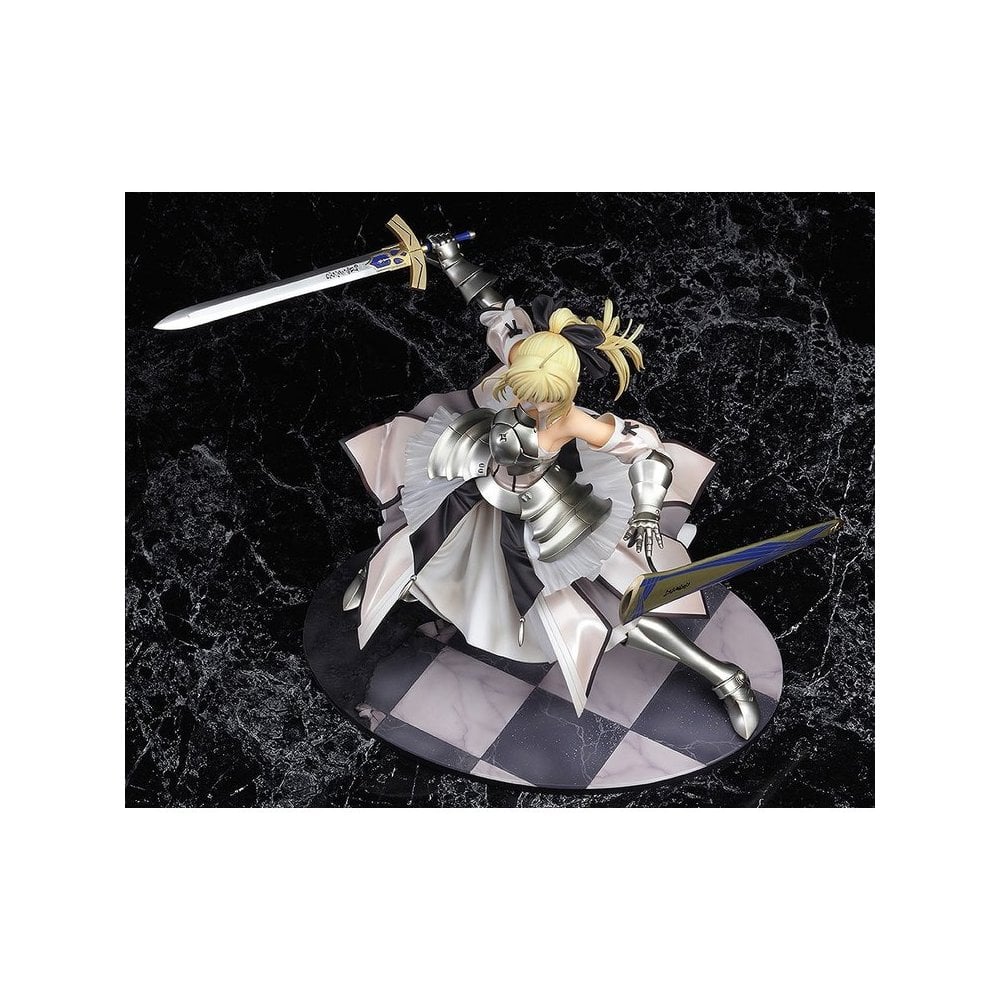 The pure white, royal knight - back again!The long-awaited rerelease of the 1/7th scale figure of Saber's alternate form, Saber Lily! Posed as if preforming her ultimate move ""Distant Avalon"" slashing through the air with her sword, Caliburn. Her other noble phantasm, the sword Excalibur has also been included and can be switched out for a difference appearance whenever you wish!The sculpting work was done by Takayuki Kawahara, who has given the figure a dynamic feeling that places Saber in the center of the action. Everything from her beautiful flowing dress to her finely detailed hair all come together to bring a wonderful figure that any fan is bound to fall in love with.