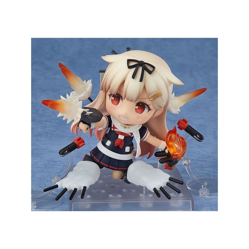 She comes with a torpedo to hold in her hand as well as more torpedoes all with shark faces painted on - these can be displayed by her side or firing outward to recreate scenes from the game! Effect parts to display the torpedoes launching, shooting effect parts and the fiery effects seen on illustrations of Yudachi Kai-II are all included, allowing for all sorts of different combat scenes - recreate the 'Nightmare of Solomon' right in your Nendoroid collection!