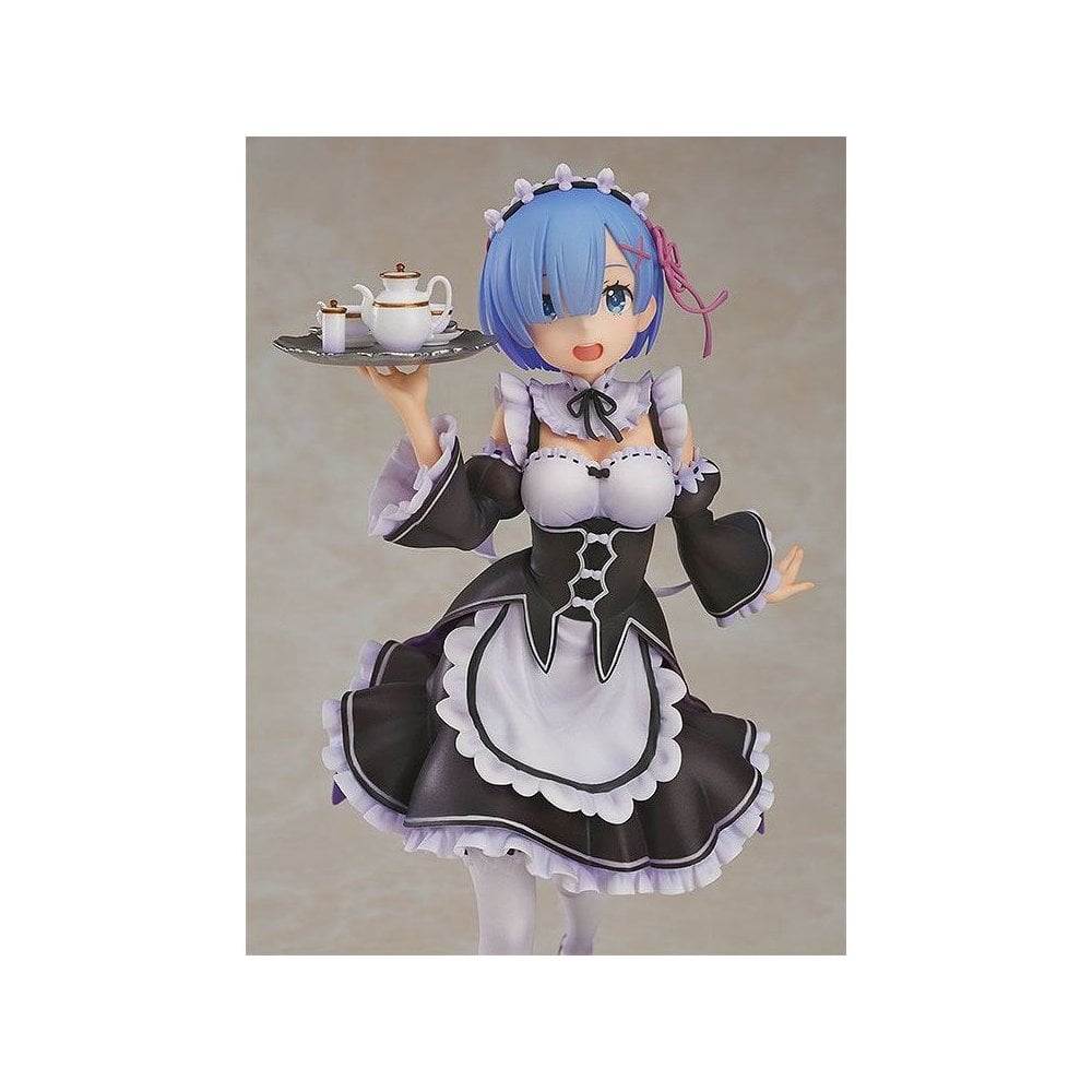 From the anime series 'Re:ZERO -Starting Life in Another World-' comes a 1/7th scale figure of one of the maids that serves at the Roswaal mansion, Rem! The figure is based on the 2nd volume of the Blu-ray/DVD jacket cover and features Rem wearing her characteristic maid outfit holding a tea set on a tray, showing her hard at work in the mansion.