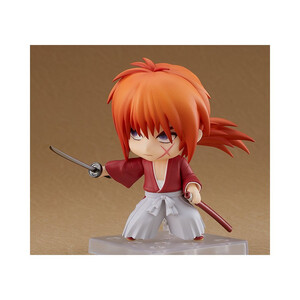 "But to tell you the truth, I much prefer Miss Kaoru's sweet and innocent talk over the truth, indeed I do!"From the globally popular manga series "Rurouni Kenshin" comes a Nendoroid of Kenshin Himura! He comes with three face plates including a standard expression, a serious expression and an "oro" expression. Optional parts include his sword and a skewer of dango so you can pose him in all kinds of situations!His sword can be displayed either sheathed or unsheathed as well. An interchangeable combat stance lower body part is included so you can pose him using his Flash of the Heavenly Soaring Dragon technique.