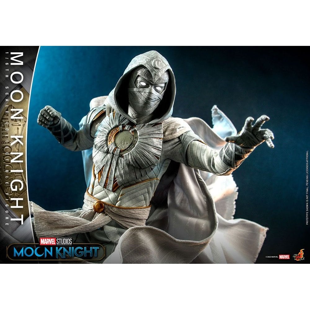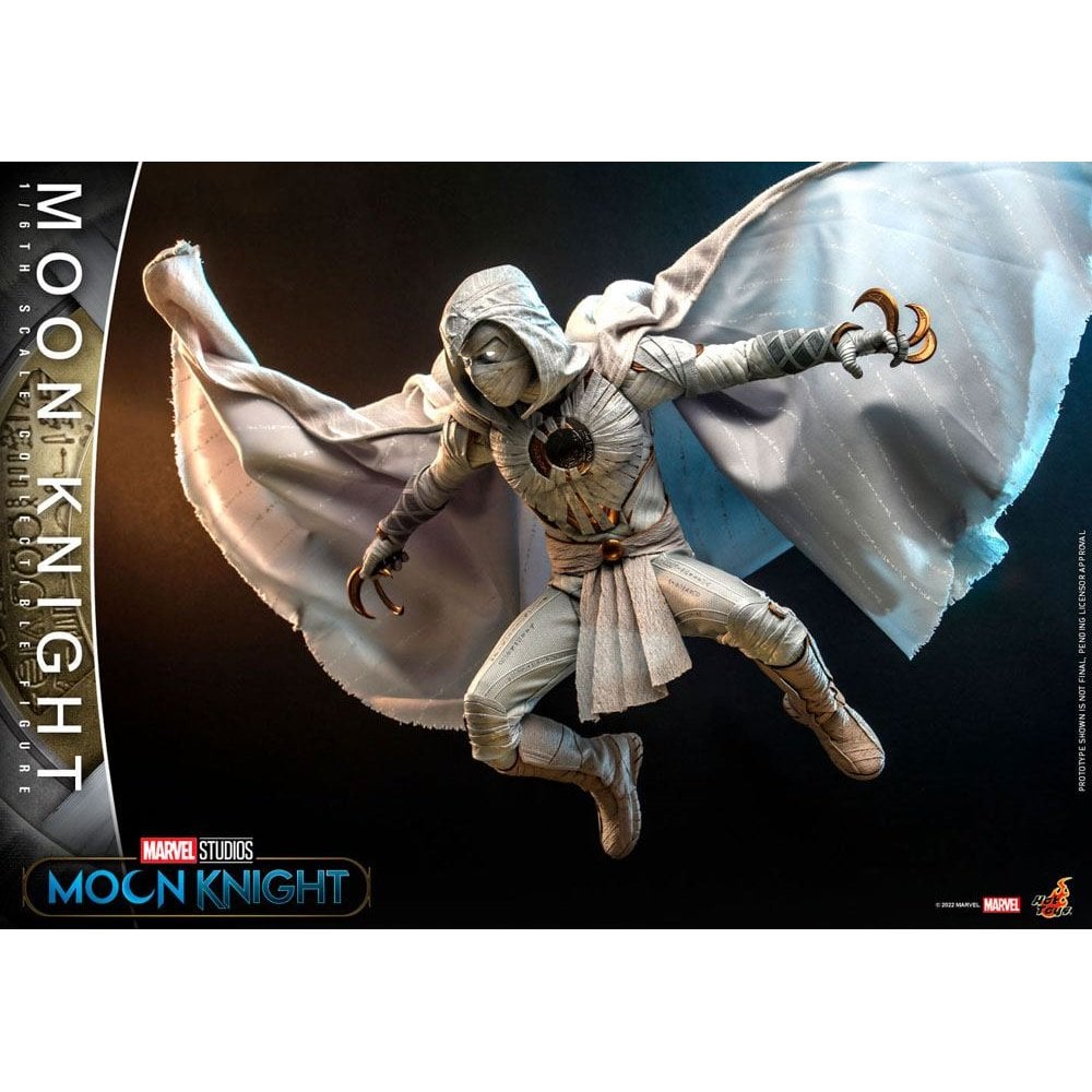 "We protect the vulnerable, and deliver justice." - Marc SpectorMarvel Studios is bringing Moon Knight, one of Marvel Comics' most complex characters, to life in the highly anticipated series. Struggling with multiple personalities and amoral inclinations, Marc Spector fights on against all odds as the cloaked avenger Moon Knight. Celebrating the entry of this incredibly cool character to MCU, Hot Toys is delighted to present the Moon Knight Sixth Scale Collectible Figure, a screen-accurate figure that will make a formidable addition to your Marvel collection.Inspired by his iconic appearance in Moon Knight series, the sixth scale Moon Knight figure features a newly developed head sculpt with LED light-up function; wrapping bandages are fully sculpted to capture his mystic appearance; a finely tailored Moon Knight costume consisting of armor parts also cape covered with ancient symbols and patterns, fabric belt in addition to the sculpted boots; his signature crescent blades comes in a variety of sizes, a crescent moon backdrop, and a figure stand.Embark on a globetrotting adventure with the new Moon Knight figure today!