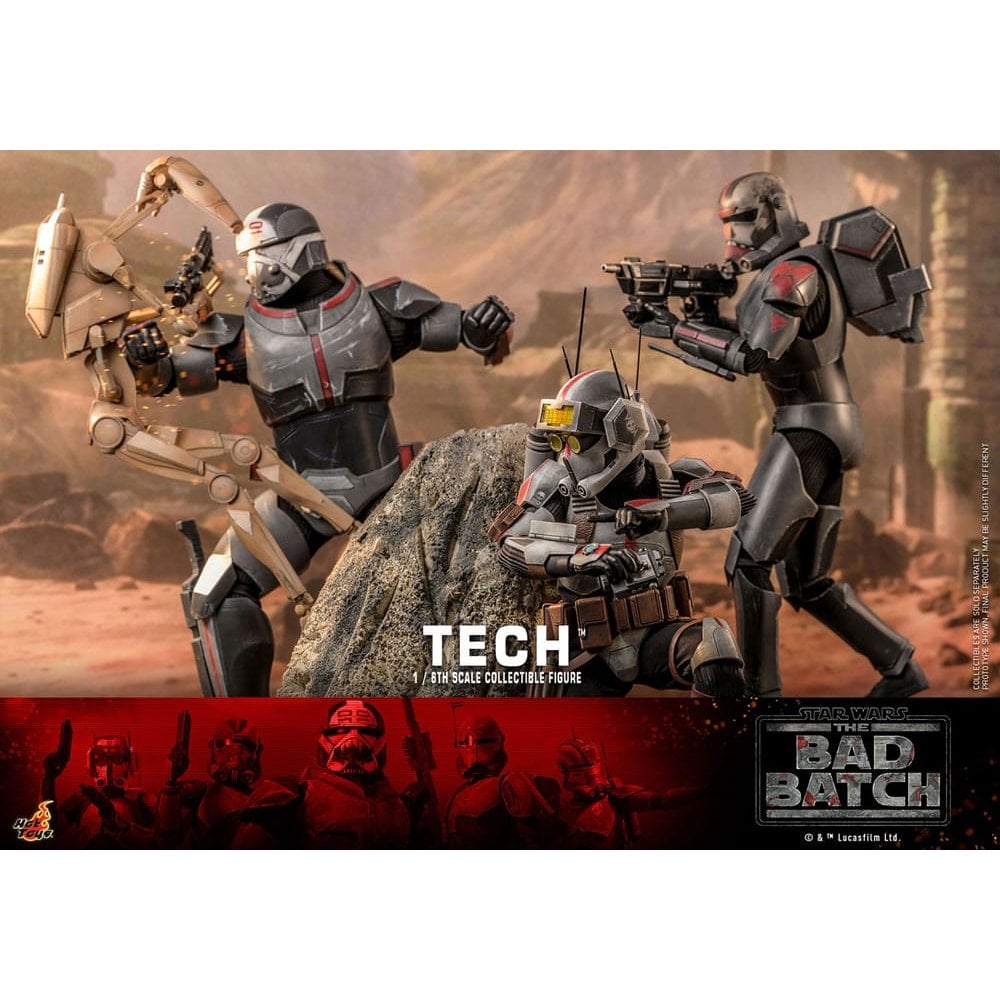 In the unusual group of specialist clone commandos called Clone Force 99 (or the Bad Batch), Tech is the computer and weapons specialist and easily the most talkative of the group. With his data analysis skills, he can puzzle through technical issues at speeds even faster than some droids.Expanding The Bad Batch collectible series, Sideshow and Hot Toys are officially introducing the detailed Tech Sixth Scale Collectible Figure as seen in the animated series!The Tech Sixth Scale Figure features characters' unique armor and helmet with weathering effects, an interchangeable head sculpt with realistic likeness, a pair of goggles, a wearable helmet, a pair of blaster pistols, a selection of tools, a backpack, and a display base!Don't miss the chance to have the brains of the Bad Batch squad in your Star Wars collectible collection!