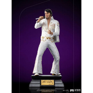 Wearing a white costume called "Aloha Eagle", decorated with various sequins and jewels that formed the design of an eagle, the symbol of the USA, the best-selling solo musician of all time took the stage in January 1973 to record, live, another of his iconic albums, in a TV special shown in 40 countries. Immortalizing one more of his memorable performances, Iron Studios proudly presents the "Elvis Presley 1973- Art Scale 1/10 - Elvis Presley" statue with the King of Rock n' Roll just as at his historic show in Honolulu, Hawaii. Surpassing even the man-to-the-moon audience, 1973's "Elvis Presley: Aloha from Hawaii" was the first live music show via satellite, broadcast by the American TV network NBC to countries in Europe, Asia, and Oceania, breaking all audience records with over 1.5 billion viewers, and also aired days later in many other countries. The performance became a live album and was a bestseller in the US, Japan, and many more countries. An inspiring performance by Elvis, where the King, according to critics, surpassed his own legend, interpreting from the pure Rock of the 1950s to his ballads, the classic Blues and Gospel songs.Features:- Limited edition- Based on original references- Made in Polystone *(may contain parts in resin, polystone, PVC, metal and fabric) - Hand paintedSize approx. 21 x 10 x 12 cm