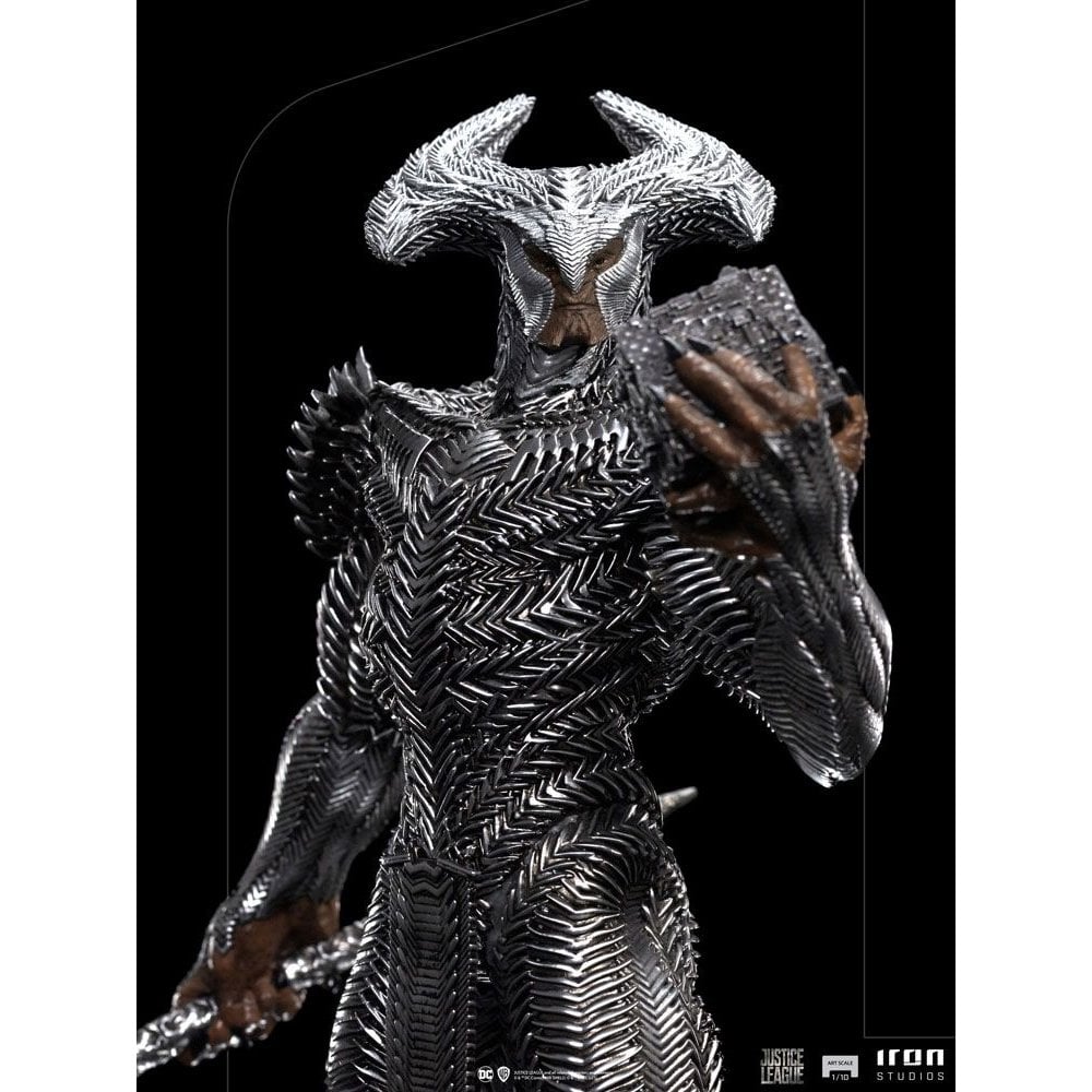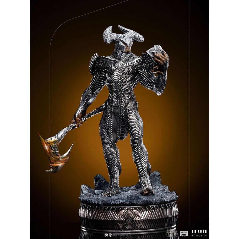 Charged with conquering 150,000 worlds in the name of Darkseid, the mighty General of the Parademons army, a subservient race of aliens from Apokolips, wields his Electro Ax, his primary offensive weapon while observing one of the Mother Boxes, which are advanced living machines, in the palm of his left hand, ready to open a Boom Tube, a portal to worlds across the multiverse for him to conquer. With its body covered in living, metallic and shiny armor, which responds to it almost symbiotically, manifesting alterations in combat and closing its blades to protect it, the giant of the race of the so-called New Gods presents itself on a rocky base with details similar to his armor on Iron Studios' "Steppenwolf - Zack Snyder's Justice League - BDS Art Scale 1/10" statue.Uncle, and herald, of the tyrant Darkseid, the conquering lord of Apokolips, Steppenwolf, in the past betrayed Darkseid with enemies who wanted to take his throne but later turned against the would-be usurpers, defeating them in hopes of righting his mistake. Even though, due to his betrayal, he was exiled and given the task of conquering 150,000 worlds as a penance. Heeding the call of the Mother Boxes, which awakened after Superman's death, he came to Earth to conquer it, and his attack began on Themyscira, the Paradise Island of the Amazons. Discovering on Earth the presence of the Anti-Life Equation, a transcendental mathematical formula that eradicates free will, he alerted Apokolips' armada, and only the Justice League, with the help of a newly resurrected Superman, were able to stop him.The Polystone statue stands approx. 29 x 20 x 15 cm tall and comes with matching base.