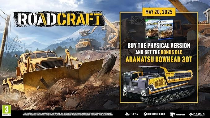 Buy the physical version of RoadCraft and get the Aramatsu Bowhead 30T, a powerful heavy-duty truck, with a 360-degree rotating base, equipped with a large dumpster and caterpillar tracks, capable of pouring up to 30 tons of sand and serve as a sand refiller for other trucks.