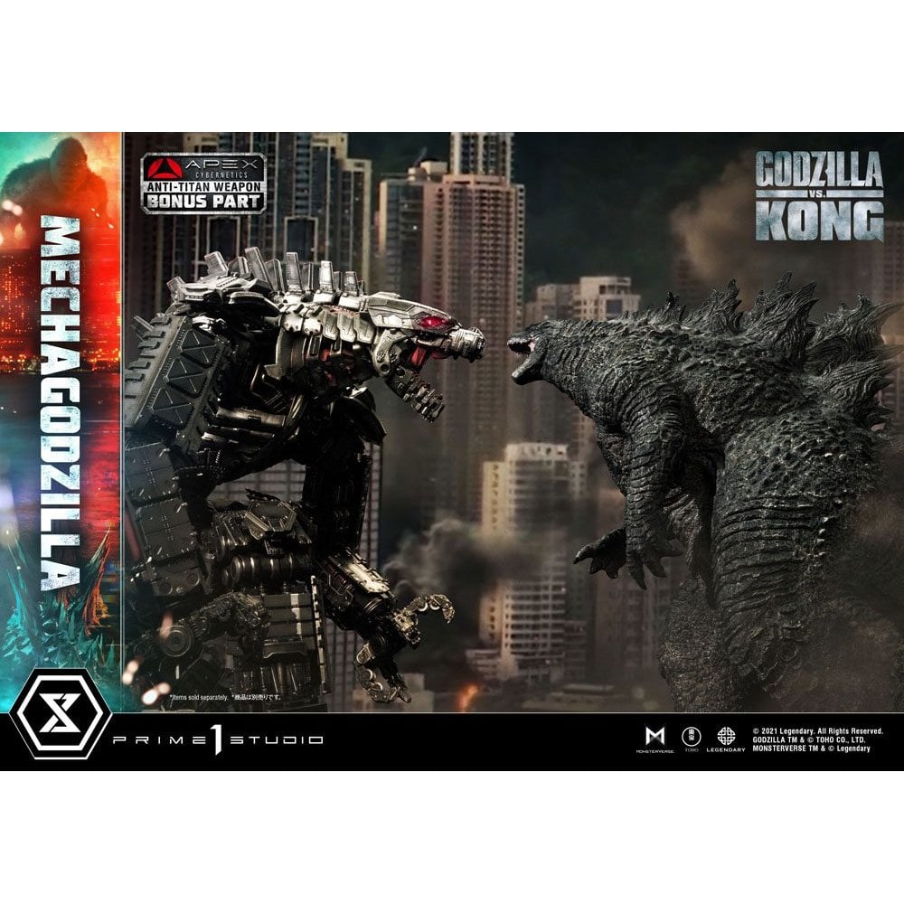 The King of the Monsters has met his match! Prime 1 Studio is proud to present the latest addition to the exciting line of Ultimate Diorama Masterline statues: the Non-Scale Mechagodzilla Bonus Version from Godzilla vs Kong!Entering the ring at almost 26 inches tall, Prime 1 Studio's Mechagodzilla delivers a terrifying challenge to Godzilla's reign!Our talented Prime 1 Studio artisans have worked tirelessly to bring every exacting detail of this technological wonder to life! Created by Apex Cybernetics as the ultimate Anti-Titan weapon, Mechagodzilla has been designed to go toe-to-toe with the king of Kaijus. Your eyes will not be able to rest as you pore over every intricate part of this visually stunning masterpiece. Prime 1 Studio has studied every reference from the film to bring you as screen accurate a Mechagodzilla as anyone ever can!Mechagodzilla goes live as you turn on the figure's LED Illumination features. It's eyes and mouth glow with the fearsome red color of its rage! Mechagodzilla stands on an Apex Cybernetics-themed environmental base, ready to throw down with its nemesis, Godzilla!Furthermore, if you order the Bonus Version from our Prime 1 Studio official online store and authorized retailers, you will receive a bonus, swappable Head part, also LED illuminated, for a more aggressive pose!You will not regret procuring this for your Prime 1 Studio Godzilla vs Kong menagerie!Product Specifications:- Size: 66 x 55 x 54 cm- LED Illuminated Eyes and Mouth- Apex Cybernetics-themed environmental base- One (1) Swappable Head Part [BONUS PART]Limited edition.Please note: Due to the small edition size and the great demand for this item, allocations are possible.Please note: Due to the size of this item, additional shipping costs may apply. Apart from your location, the actual package size and weight is needed to determine those costs. Both are unknown at this point and may not be available until the product arrives in our warehouse