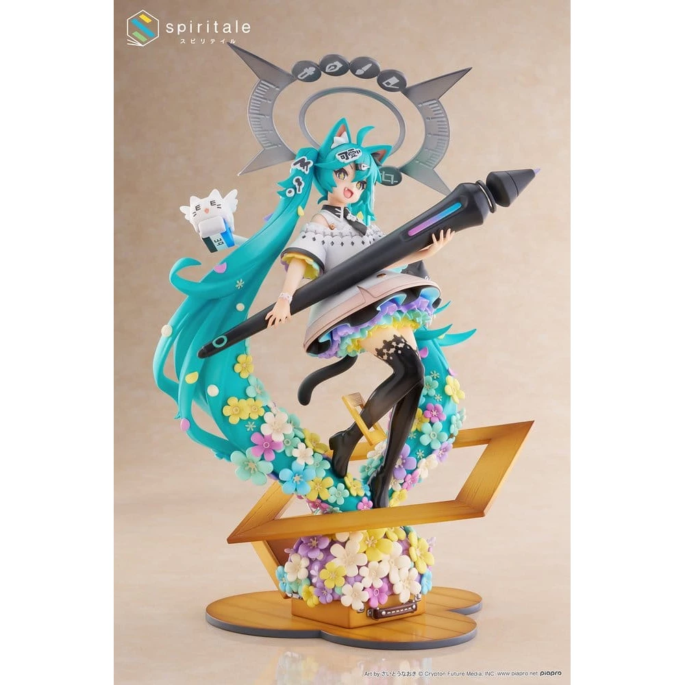 This PVC statue comes from 'Hatsune Miku'. The detailed 1:7 scale statue is approx. 34 cm tall and comes with a base in a window box. Requires LR41 batteries (not included).